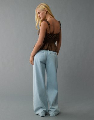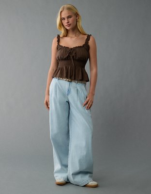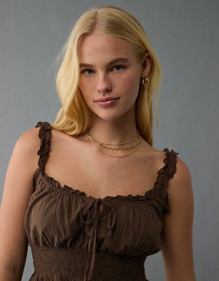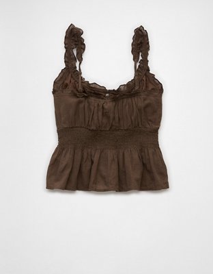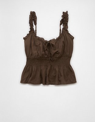 The Details Lace trip strapsScoop neck with tie detailRuched bustCinched waistFlutter hemThis top is Real Good: Made with the planet in mind & a promise to continue to do better....