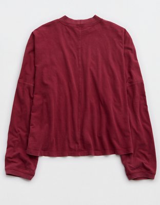 The Details Ultra soft and cozy distressed fabric with cool wash deetsSlouchy relaxed fitDropped shoulder seamsBalloon sleevesAccessibility deets: over-the-head access for easier...