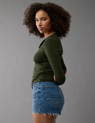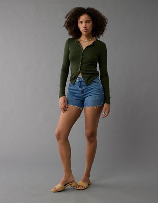 AE Stretch Curvy Crossover Denim Mom Short