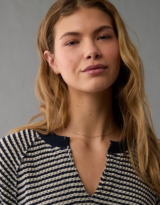 AE Big Hug Notch Neck Waffle Sweatshirt