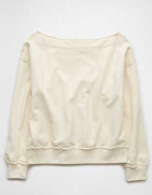 The Details Super soft heritage fleeceOff-the-shoulder neckRibbed cuffs & hemThis is Real Good: Made with the planet in mind & a promise to continue to do better. Materials & Care...