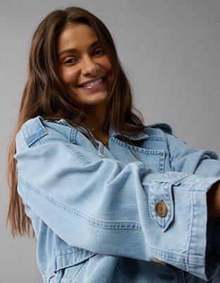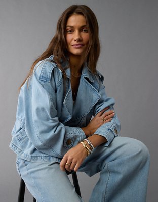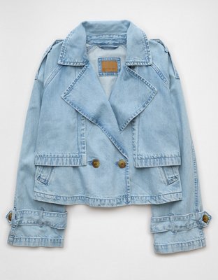 The Details Light wash drapey denimDouble-breasted lapelBelt at waist for a custom-to-you fitAdjustable cuffs Materials & Care 50% Cotton 40% Lyocell 10% Recycled CottonMachine...