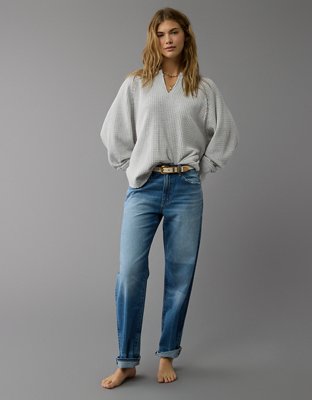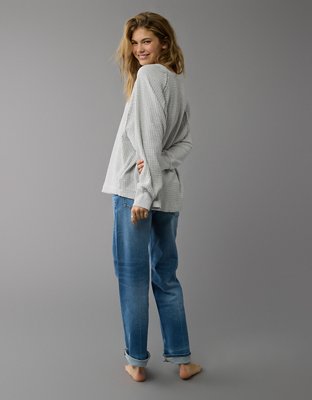 AE Big Hug Notch Neck Waffle Sweatshirt