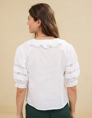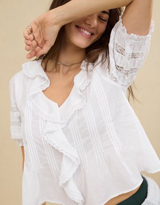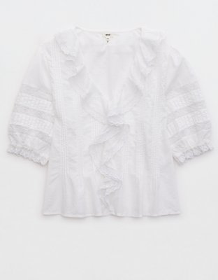 Aerie Short Sleeve Ruffle Blouse