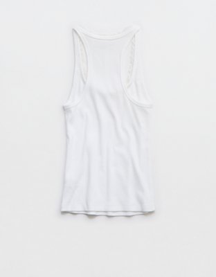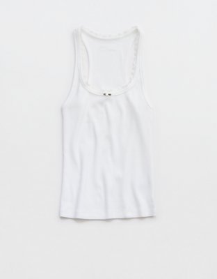 The Details Soft textural ribbed fabricRacerbackRibbed trim on neck and armholesRosette lace deets for a femme twistAccessibility deets: tagless design and over-the-head access...
