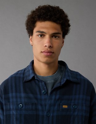The Details Heritage Timberland flannel twill with a super soft AE washLeft chest pocket with button flap closure | Open patch pocket with Timberland pen pocket detail on...