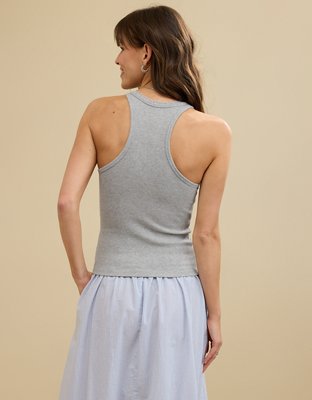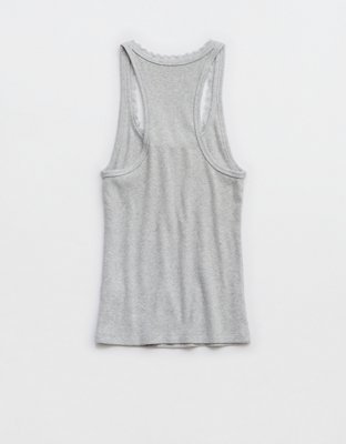 The Details Soft textural ribbed fabricRacerbackRibbed trim on neck and armholesRosette lace deets for a femme twistAccessibility deets: tagless design and over-the-head access...