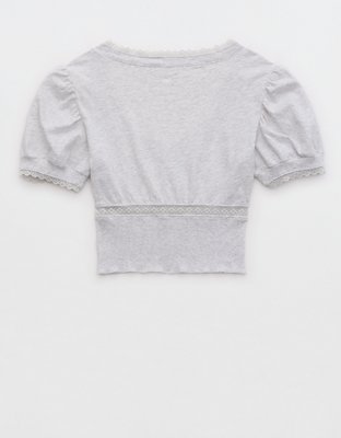 Aerie Cropped Lace Trim V-Neck T-Shirt