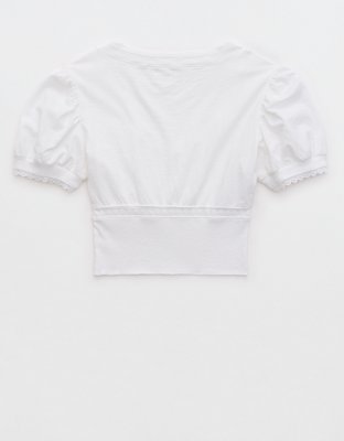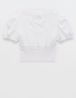 Aerie Cropped Lace Trim V-Neck T-Shirt