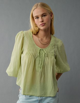 The Details Crisp cottonCrew neckSlight balloon sleevePintuck details at chestThis top is Real Good: Made with the planet in mind & a promise to continue to do better. Materials &...