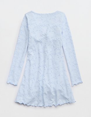 • THE LOOK: Textured eyelet jacquard with lettuce trims.