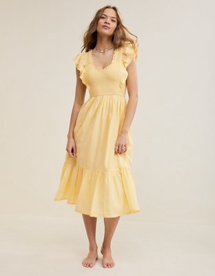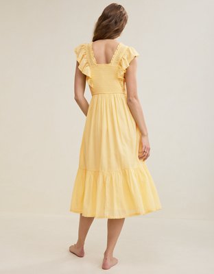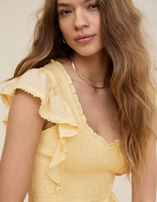 The Details Lightweight gauzey fabricSmocked elastic bodiceRuffle deets on strapsCrochet trim on hem and rufflesLined for extra comfort & supportAccessibility deets: lightweight...
