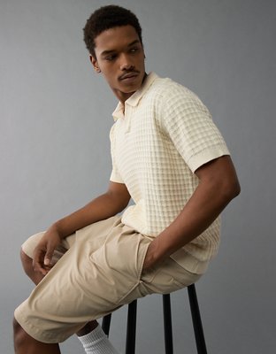 The Details Super soft textured sweater knitJohnny collar Materials & Care 60% Cotton 40% AcrylicMachine washImported Size & Fit Standard fit & lengthShort sleeves