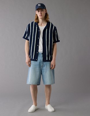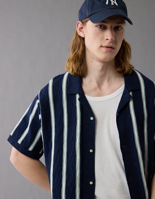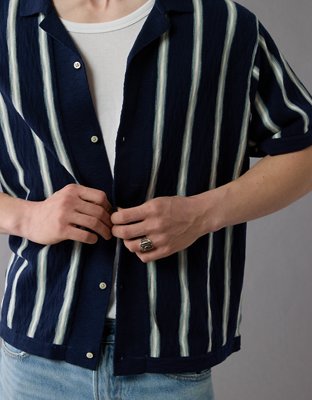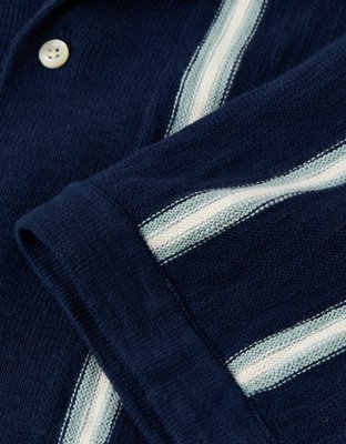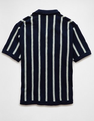 AE Weekend Striped Button-Up Sweater Polo Shirt