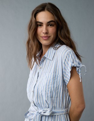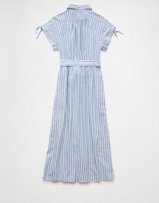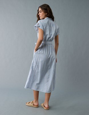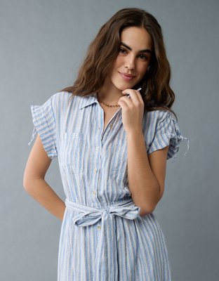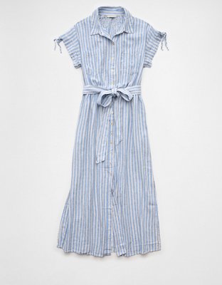 AE Linen-Blend Button-Up Midi Shirt Dress