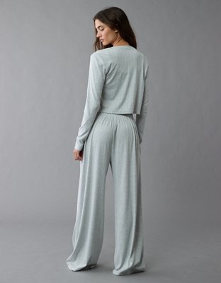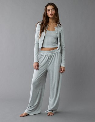 The Details Super soft & plush pointelle fabricCardigan with button-up front closureTank top with scoop neckHigh-waisted wide-leg pj pant with faux fly button closure Materials &...