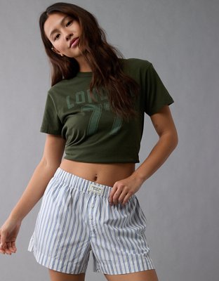 The Details Crisp cottonAE branded waistband detailElastic waistPockets Materials & Care 100% CottonMachine washImported Size & Fit High-waistedRelaxed fit3 5/8" inseam