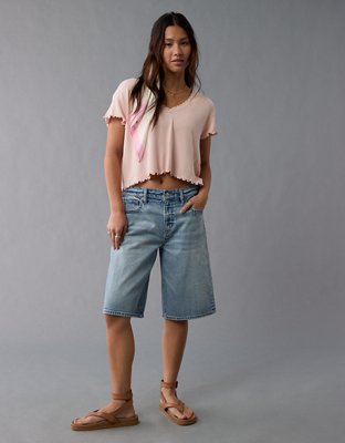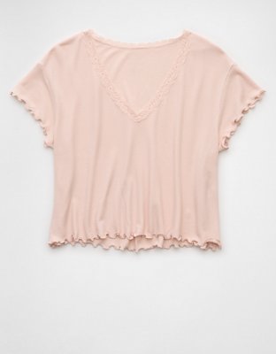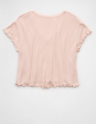 AE Soft & Sexy V-Neck Cropped Waffle T-Shirt