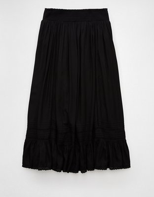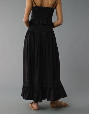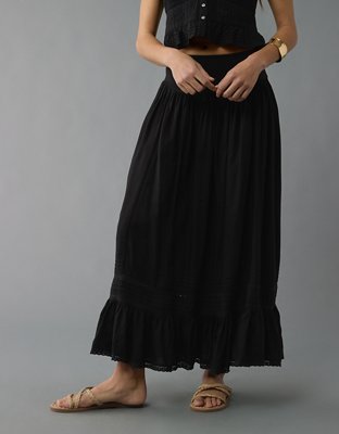 The Details High waist with v-drop detailLace pintuck detailsRuffled hem Materials & Care 100% ViscoseMachine washImported Size & Fit High-waistedBasque waist silhouetteMaxi length