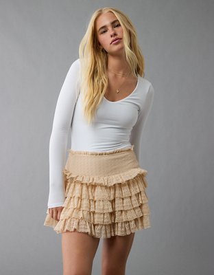 The Details Shorts underneathRuffles Materials & Care 100% NylonMachine washImported Size & Fit Classic silhouetteHigh-waistedMini length