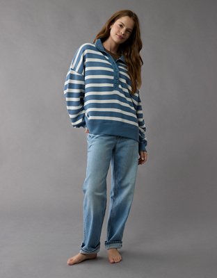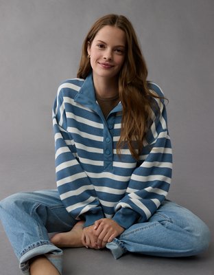 The Details Ultra-soft & cozy fleeceQuarter-button henley mock neckLong sleevesAll-over exposed seam detailingSplit hemThis sweatshirt is Real Good: made with the planet in mind...