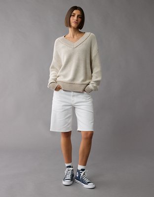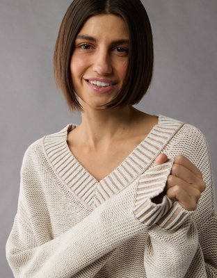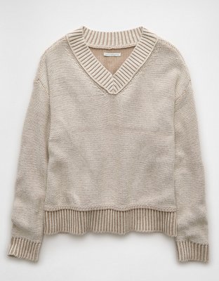 The Details Knit from 100% cottonV-neckDrop shoulderRibbed collar cuffs & hemThis sweater is Real Good: Made with the planet in mind & a promise to continue to do better....