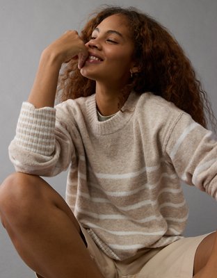 The Details Long sleevesCrew neckDrop shoulderRibbed collar cuffs & hemStripesThis sweater is Real Good: made with the planet in mind and a promise to continue to do better...