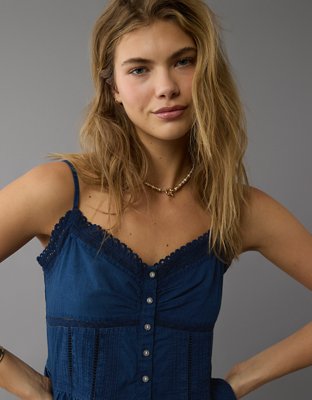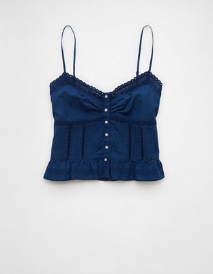 The Details Spaghetti strapsSweetheart neck with cinched bustLace trim detailsCorset-inspired constructionThis is Real Good: Made with the planet in mind & a promise to continue...