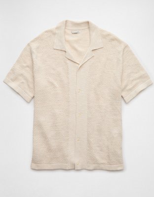The Details Super soft textured sweater knitCamp collarButton-up front Materials & Care 95% Cotton 5% LinenMachine washImported Size & Fit Standard fit & lengthShort sleeves