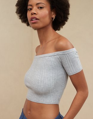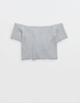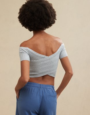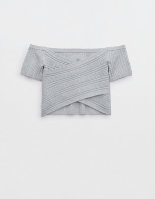 The Details Ultra-soft & sturdy textured sweater fabric (cozy is a priority even in warm weather!)Off the shoulder open neckline!Reversible! Wear the crossover deets in the front...