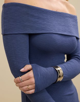 The Details Soft stretchy fabricFoldover off-the-shoulder necklineSide seam slitAccessibility deets: wide neck and over-the-head access for easy on/off! Materials & Care 75% Rayon...