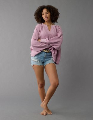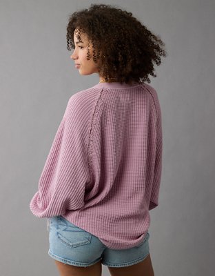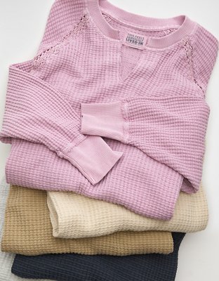 AE Big Hug Notch Neck Waffle Sweatshirt