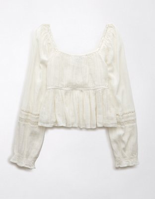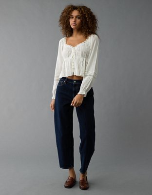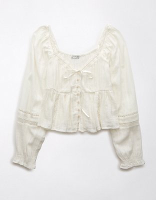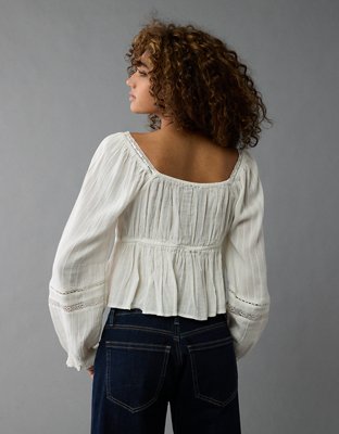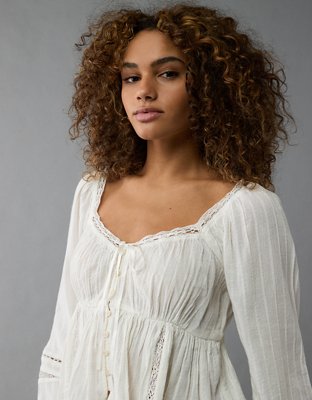 The Details Balloon sleeveV-neck with trim and tie detailBabydoll fit midriffEyelet inset detailsThis blouse is Real Good: Made with the planet in mind & a promise to continue to...