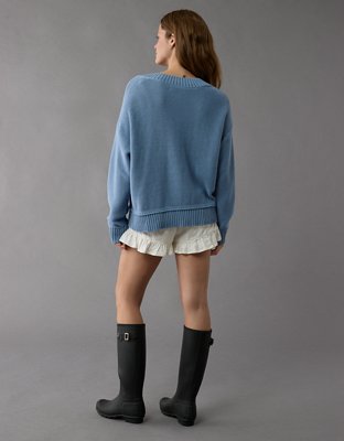 The Details Knit from 100% cottonV-neckDrop shoulderRibbed collar cuffs & hemThis sweater is Real Good: Made with the planet in mind & a promise to continue to do better....