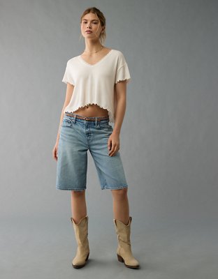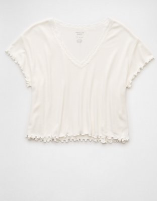 AE Soft & Sexy V-Neck Cropped Waffle T-Shirt
