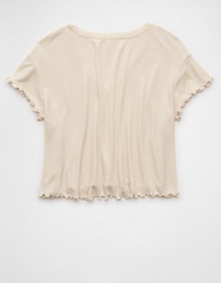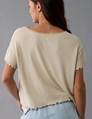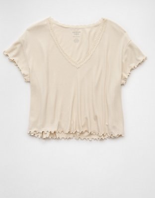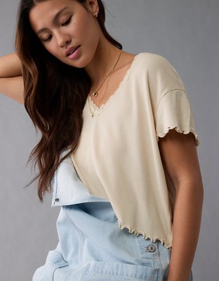 AE Soft & Sexy V-Neck Cropped Waffle T-Shirt