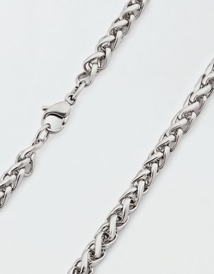 - Intricate link design made with polished stainless steel
