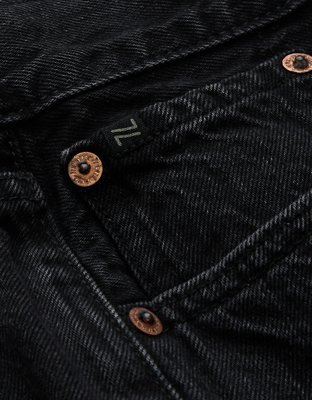 The Details Rigid marbled black wash denim1 piece waistband5-pocket styling with hand-set rear pockets and handcrafted hinged bartacksSignature 77 details at back pocket and coin...
