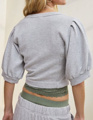The Details Real Good Everyday FleeceScoop necklineRibbed trim deets at neck and cuffsShort puff sleevesRibbed side panelsAccessibility deets: over-the-head access for easy...