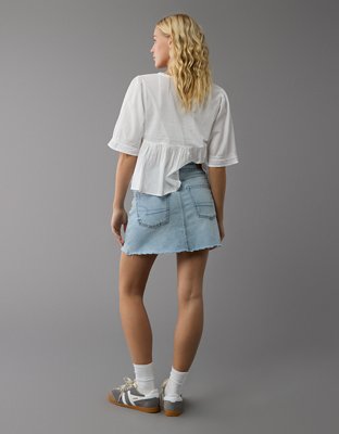 The Details Light wash stretch denim with no shortage of comfortZip flyTwo open back pocketsRaw hemThis skirt is Real Good: Made with the planet in mind & a promise to continue to...