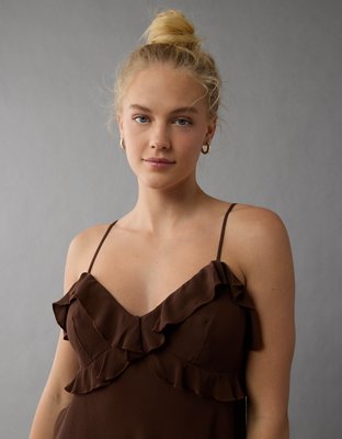 The Details Spaghetti strapsV-neckRuffle details at bust Materials & Care 100% ViscoseMachine washImported Size & Fit SleevelessSlip dress silhouetteMini length
