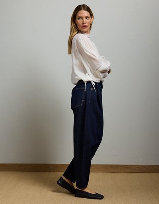 The Details Rigid dark wash denim5-pocket stylingPleated front to create a tapered leg shape Materials & Care 100% CottonMachine washImported Size & Fit Baggy oversized fitSize...