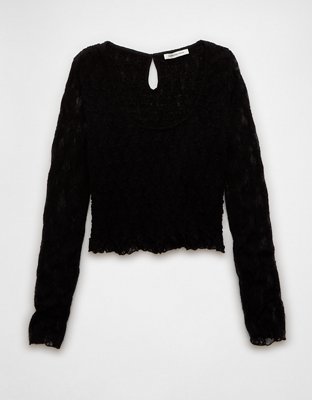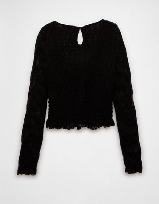 The Details Scoop neckSmocked bodiceLace throughout Materials & Care 100% NylonMachine washImported Size & Fit FittedCropped lengthLong sleeves