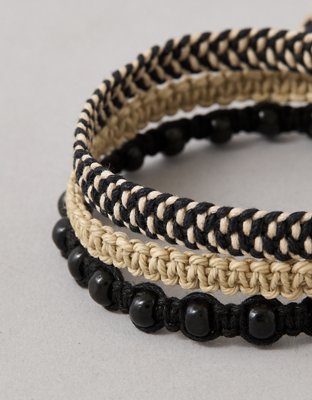 - Bracelet 1: 60% Mango Wood 33% Wax Cord 5% Brass 2% Cubic Zirconia | Bracelet 2: 100% Wax Cord | Bracelet 3: 100% Wax Cord
