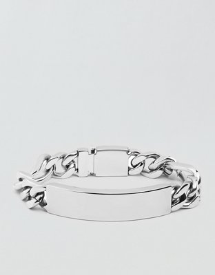 The Details Length: 8"; Width: 0.5"ID plate: 14mm x 53mmBox clasp closure Materials & Care Stainless SteelImported