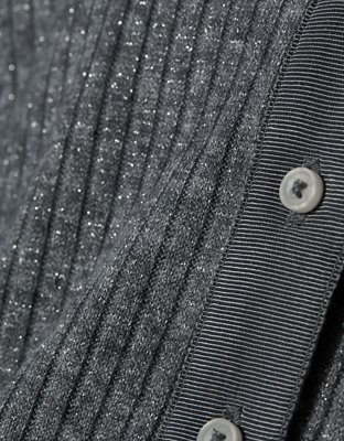 The Details Cozy sweater knit fabric with lurex shine stripesSplit sleeve deetsFunctional buttons (because it´s the little things that count!)Accessibility deets: open...