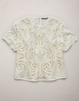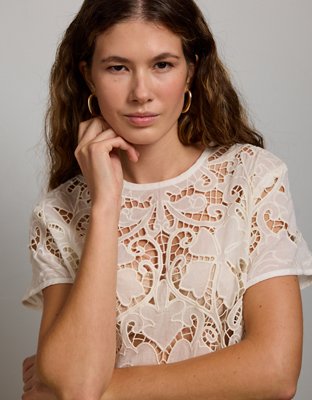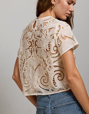 The Details Cotton voile embroidered laceCrew neck Materials & Care 100% CottonDry cleanImported Size & Fit Relaxed fitCropped lengthShort sleeves