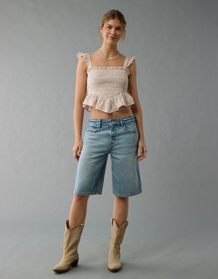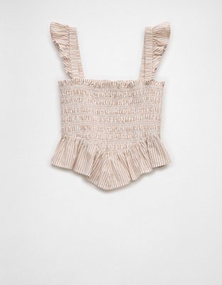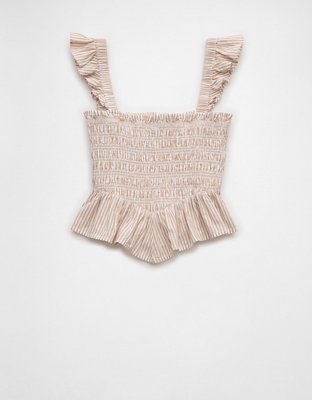 The Details Stretchy straps with flutter detailsSquare neckSmocked bodiceV-shaped peplum hemThis is Real Good: Made with the planet in mind & a promise to continue to do better....