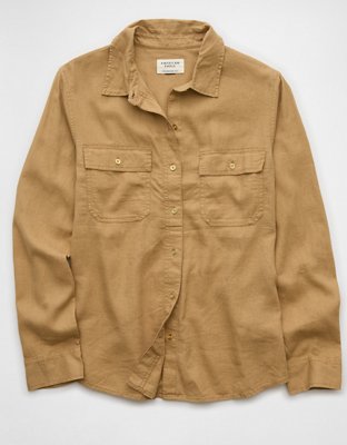 AE Weekend Vibes Linen-Blend Long-Sleeve Button-Up Shirt