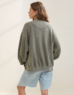 The Details Real Good Everyday FleeceRibbed trim on crewneck cuffs and hemBalloon sleeves with seaming deetsReverse fabric side panelsAccessibility deets: over-the-head access for...